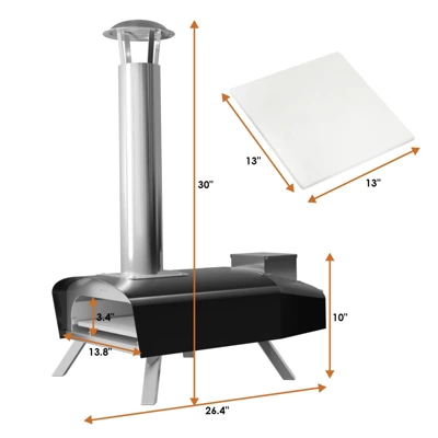 Portable Pizza Oven Outdoor Wood Fired with Foldable LegsProduct Description:Experience authentic wood-fired pizza anywhere with our premium Portable Pizza Oven, crafted from high-quality stainless steel for exceptional durability and performance. This innovative oven preheats in just 10-15 minutes and cooks perfect pizzas in 60 seconds, delivering professional results at home or outdoors. The versatile design features convenient foldable legs for easy transport and storage, making it ideal for camping trips, backyard parties, and tailgating events. Enhanced with a 12-inch square pizza stone for perfectly crispy crusts, this oven combines quick cooking efficiency with robust construction. Whether you’re hosting gatherings or enjoying family meals, this oven brings restaurant-quality pizza to your outdoor adventures.Key Features:1. Quick 60-Second Pizza CookingAchieves professional cooking temperatures rapidly, baking perfect wood-fired pizzas in just 60 seconds. The efficient design preheats in 10-15 minutes, saving time and fuel while delivering authentic crispy crusts with perfectly melted toppings.2. Premium Stainless Steel ConstructionBuilt with high-quality stainless steel that ensures durability, corrosion resistance, and food safety. The brushed finish maintains its appearance through regular outdoor use and various weather conditions.3. Foldable Legs for Ultimate PortabilityFeatures innovative foldable legs that make transportation and storage effortless. Perfect for camping, beach trips, tailgating, and backyard parties, then folds compactly when not in use.4. 12-Inch Square Pizza Stone IncludedComes with a professional 12-inch square pizza stone that distributes heat evenly for consistently crispy crusts. The stone creates authentic wood-fired texture and prevents burning while enhancing flavor.5. Easy Maintenance & CleaningDesigned for effortless cleaning with removable components and simple wipe-down surfaces. The stainless steel construction resists sticking and staining, making maintenance quick and convenient after cooking sessions.Technical Specifications:? Material: Premium Stainless Steel (Brushed Finish)? Pizza Stone: 12-inch Square Stone Included? Preheat Time: 10-15 minutes? Cooking Time: 60 seconds per pizza? Fuel Type: Wood? Special Feature: Foldable Legs for Portability? Heating Method: Conduction? Ideal For: Outdoor Cooking, Camping, Parties