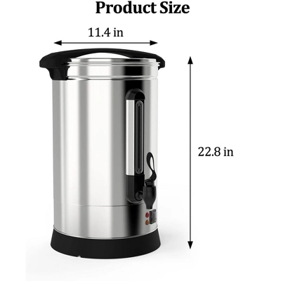Large Capacity Commercial Coffee Urn â 100-Cup Stainless Steel Brewer for Events and CateringIdeal for high-demand environments, this commercial coffee urn combines large-volume brewing, rapid operation, and lasting durability. Designed to serve crowds efficiently, itâs perfect for event venues, offices, catering services, churches, and restaurants where reliable, scalable coffee service is essential. Crafted entirely from food-grade stainless steel, this brewer ensures consistent performance and easy maintenance even under frequent use.Key Features:High-Capacity Brewing for Large GatheringsWith an 18-liter capacity (approximately 100â120 cups), this urn meets the demands of sizable events, making it suitable for conferences, weddings, banquets, and other occasions where serving coffee in volume is required.Fast and Efficient Brewing CyclePrepares a full batch in just 40 minutes, delivering freshly brewed coffee quickly to keep pace with guest flow and minimize wait times during high-traffic periods.Durable Food-Safe Stainless Steel ConstructionBuilt with commercial-grade stainless steel that resists corrosion, stains, and wear. The reinforced dispenser spout allows smooth, drip-free pouringâeven during continuous use.Removable and Reusable Filter for Easy CleaningFeatures a reusable stainless steel filter and detachable components that simplify cleaning and upkeep. This design supports better hygiene, reduces waste, and extends the life of the unit.Automatic Heat Retention for Extended ServiceThe integrated heating system maintains coffee at an ideal serving temperature for hours after brewing, ensuring every cup stays hot and fresh throughout long events.