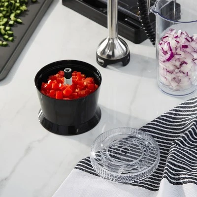 BergHOFF’s 4.25″/10oz Grinder attachment completes BergHOFF’s X5 Pro Handheld food processor and allows you to grind and mince spices, herbs, vegetables or even nuts and seeds at the touch of a button. The grinder is crafted from durable, BPA-free tritan plastic with a transparent lid to view your ingredients while chopping. This attachment offers both versatility and convenience. Want to avoid cross-contamination of flavors? You can easily save time and effort by investing in multiple grinders. Effectively grind ingredients for a vast range of recipes like sauces and dips. Whether you’re prepping for a family feast or experimenting with new recipes, this grinder attachment enhances your food processor’s versatility, helping you achieve perfect textures every time. Upgrade your BergHOFF X5 Pro handheld food processor with this essential grinder attachment.