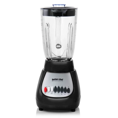 The Better Chef 10 Speed 350 Watt Glass Jar Blender is versatile and durable. This blender is a must have countertop accessory with its 10 continuous speeds plus pulse for mixing to whipping and chopping. This blender includes one durable 42oz tempered glass jar that resists breakage and is dishwasher safe for convenient clean up. Powerful 350 Watt ice crushing power, perfect for making all your favorite smoothies and sauces. Comes with a glass jar with removable chopping blade, electric base, and convenient removable filler cap that lets you add ingredients while in place.