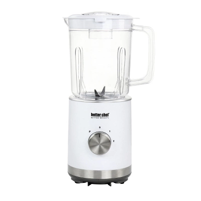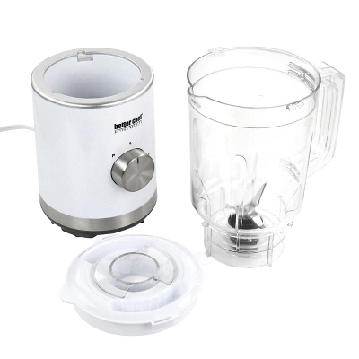 This three cup compact Better Chef blender is perfect for your daily smoothies or side dish sauces. This blender has a 25 ounce capacity, which is the perfect size for small families and personal use. It’s compact construction allows you to store easily on the countertop or out of the way in a cabinet. Features 300 watts of ice-crushing power and a rotary dial that lets you pulse or blend at low and high speeds. 25 Ounce blender cup is made with BPA-free plastic and the base is made with stainless steel. Hand Wash Recommended.