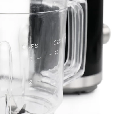 This three cup compact Better Chef blender is perfect for your daily smoothies or side dish sauces. This blender has a 25 ounce capacity, which is the perfect size for small families and personal use. It’s compact construction allows you to store easily on the countertop or out of the way in a cabinet. Features 300 watts of ice-crushing power and a rotary dial that lets you pulse or blend at low and high speeds. 25 Ounce blender cup is made with BPA-free plastic and the base is made with stainless steel. Hand Wash Recommended.