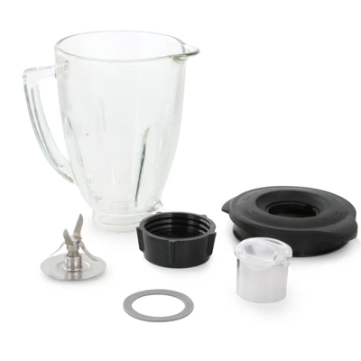 The Better Chef 6 piece Complete 48 Oz Round Blender Glass Jar Replacement Parts and Accessories Kit will provide you with everything you need to replace that small blender jar. Included in this set is one 48 ounce glass jar, one bottom cap, one rubber gasket, one blender blade, one lid, and one filler cap so you have everything you need to make the swap. This 6 piece kit is compatible with most Oster blender models. Upgrade your home blender for bigger and better creations!