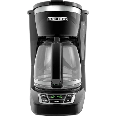 Start every day with a fresh, hot pot of coffee using the BLACK+DECKER 12-Cup Digital Coffee Maker. Designed for convenience and performance, this programmable coffee machine features a large 12-cup Duralifeâ„¢ glass carafe with clear measurement markings and an ergonomic handle for easy pouring. With QuickTouchâ„¢ programming, you can set the 24-hour auto brew function to have coffee ready when you need it. The Sneak-A-Cupâ„¢ feature lets you grab a cup mid-brew without spills, while the easy-view water window ensures precise filling. Digital controls with rubberized buttons make it simple to customize your brewing schedule, and the 2-hour auto shutoff adds peace of mind. The removable, washable basket filter means fewer paper filters and easier cleanup. With its sleek black design and reliable performance, this coffee maker is the perfect addition to any kitchen.