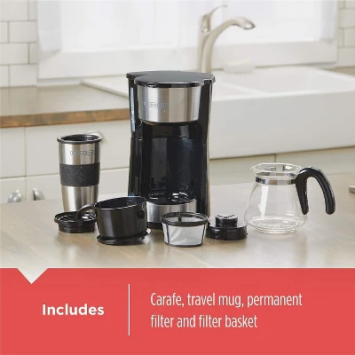 - 14-oz. Stainless Steel – Travel Mug Included Take your coffee to go with the included stainless steel travel mug.