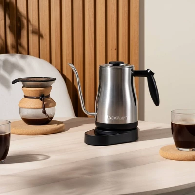 Pour over coffee is simple to brew, but the results can be exquisite – as long as you have the right equipment. With its slim, elegant spout and powerful boil, the BISTRO temperature controlled gooseneck kettle is a key tool for at-home baristas. The elegant style and precise temperature control makes it a perfect addition to any countertop in need of hot water on demand. Designed for precision pouring, this stylish appliance gives you optimum control over your water flow. With the temperature control feature you’ll be able to select 5 different temperatures between 140ºF – 212ºF. By pouring hot water in slow circles over your ground coffee beans, you’ll get a cup of pour over coffee that’s pure, balanced, and bursting with flavor and aroma.