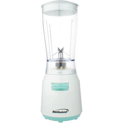 Use the powerful Brentwood Blue 14-Oz. Electric Personal Blender to easily crush ice and blend delicious fruit smoothies, thick milk shakes, hearty protein shakes, and more. Simply attach the jar and enjoy 1-touch operation! It includes blade assembly with stainless steel blades and a BPA-free 14 oz. jar with lid. Its space-saving design takes up little counter space and makes for easy storage. The removable blade assembly, jar, and lid are dishwasher-safe.