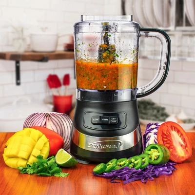 Use the powerful 200 watt Brentwood FP-549BK 3 Cup Food Processor to save time and energy while in the kitchen. Create delicious homemade dips and salsas. Quickly and conveniently chop veggies, spices and herbs for home cooked meals. Sharp and durable stainless steel blades pulverize contents within seconds of using the low or high speeds. Blades can only be powered when the safety lock lid is fully secured preventing accidents. Save counter and storage space with this big performing compact food processor with cord wrap. Unit stays securely in place with anti-slip suction feet. Removable parts are dishwasher safe making clean up a snap. Entirely BPA Free.