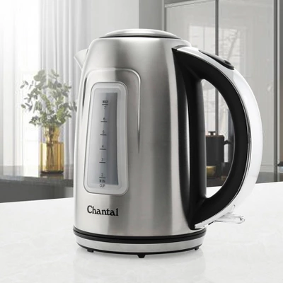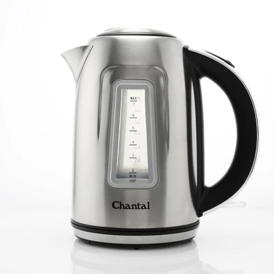 Chantal’s Jupiter electric kettle is in a world of its own! With a space shuttle shaped body, this kettle offers a seamless combination of stylish design and easy functionality. Pronounced water level windows on both sides allow you to see how much water remains in the kettle without opening the lid. Maximum capacity is 7 cups (56 oz).  Handle stays cool to the touch when boiling water. The interior of the kettle is almost entirely stainless steel making it durable for years of continual use.  The limited plastic components that come in contact with water are all non-toxic and BPA-free.  Boil-dry safety protection automatically turns the kettle off when it reaches a full boil.