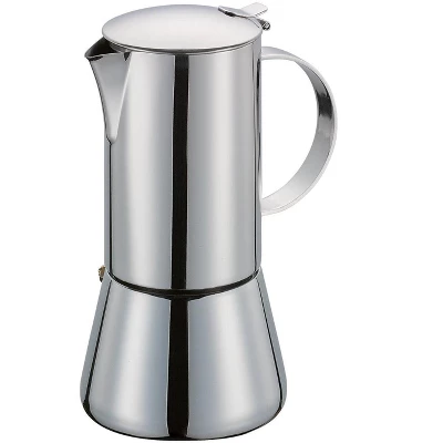 Enjoy cafe flavor and experience in the comfort of your own home with espresso makers from Cilio.Easy to use on your stovetop, your espresso will be ready to enjoy in just minutes.Thanks to its completely flat base, “Aida” sits firmly on electric, gas, or induction cooktops.The smooth mechanism securely attaches the pot to the bottom.Stainless steel inside and out; polished exterior. Superior workmanship.Available in three sizes, from two to ten cups.