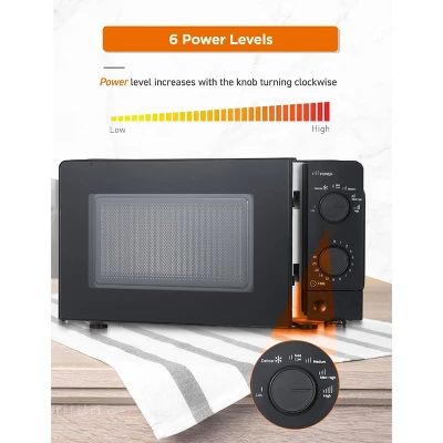 - 6 Power Levels: Our compact microwave (17.75″ x 12.5″ x 10.25″) has 6 outstanding heating settings, including Low, Defrost, Medium Low, Medium, Medium-High & High.