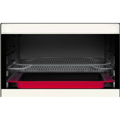 - Includes: Baking pan, Crumb Tray, Wire Rack, Air Fry Basket