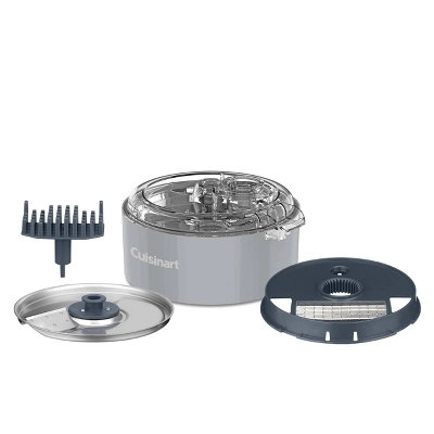 Imagine dicing favorite fresh vegetables and fruits into perfect little 10mm squares in seconds! The Dicing Accessory Kit attaches to Elemental 13 Cup Food Processor and Stainless Steel 13-Cup Food Processor. Dice a cupful or bowlful of nutritious broccoli, zucchini, carrots and onions to add color, flavor and texture to soups and sauces. Or you can dice firm, fresh fruits like apples and pears to garnish a salad. Easy to use, with a cleaning tool that instantly clears the grid to make cleanup quick. Everything goes into the storage case when done, and the lid of the case is a flat work bowl cover. Cuisinart thinks of everything!