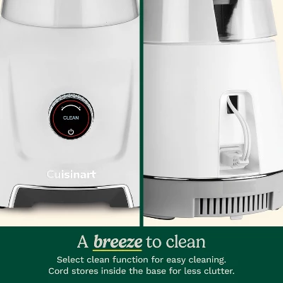 Many recipes can be ready with a turn of the cutting-edge, easy-to-use digital dial. Six preset programs and one manual program help consumers save prep time. A durable and stain-resistant 48-oz glass jar and 4-prong stainless steel blade assembly engineered to create perfect smoothies, frozen drinks, milkshakes, crushed ice. All of these are easy for consumers to achieve with Cuisinart’s optimized Hurricane® Vortex technology. The “Clean” program makes cleanup a breeze and integrated cord storage helps declutter countertops.