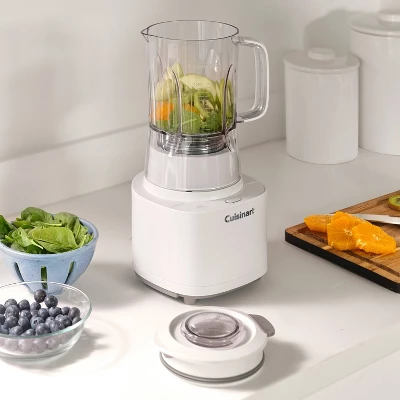 With the Cuisinart Soho BL-9 Blender, all you need to do is add your preferred ingredients to the 36 oz. jar, secure the lid and press “Blend” or “Pulse.” Its user-friendly design makes it simple to operate, and the jar has enough capacity to create a variety of recipes. The integrated 2 oz. measuring cup on the lid ensures that adding ingredients is mess-free. Cleaning up is also quick and easy with the built-in “Clean” function and removable blade assembly. Plus, the integrated cord storage feature keeps your counters free of clutter.