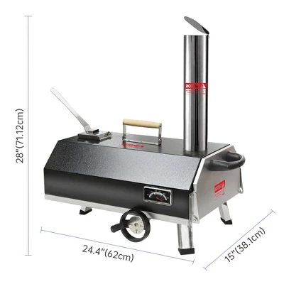Description:Product Name: Portable pizza ovenMain colors: black, silverMain material: stainless steelComplete Attachment: The outdoor pizza oven comes with a series of accessories, such as a baking tray and grate, providing you with everything you need for a multifunctional cooking choice.Quick heating: The outdoor pizza oven is designed for fast and effective heating, allowing you to cook pizza in a short amount of time. This is particularly beneficial when entertaining guests or organizing events.Multifunctionality: In addition to pizza, outdoor pizza ovens can also be used to cook various other dishes, such as steak, bread, grilled meat and vegetables, and even desserts. It provides a multifunctional cooking experience for outdoor cooking enthusiasts.Durable structure: The outdoor pizza oven is made of high-quality materials to ensure its durability and lifespan. It can withstand outdoor factors and frequent use, making it a reliable investment.Elegant Design: The aesthetic design of the outdoor pizza oven adds a touch of to your outdoor cooking area. It can not only serve as a practical cooking utensil, but also enhance the overall visual appeal of outdoor spaces.Packing list:1 set pizza ovenA set includes:Pizza oven with accessories: drying and cooling frame, cast iron plate, food tongs, plastic shovel, dough cutting machine, pizza knife wheel, heat-resistant gloves, silicone pastry mat, pizza crust, handbag
