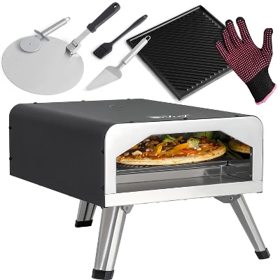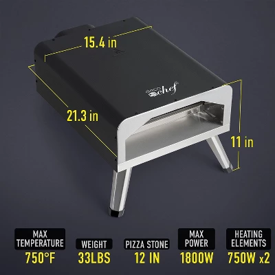 Plug in and prepare restaurant-quality organic dishes in the comfort of your own home!The Deco Chef 13″ 1800W Electric Pizza Oven is a game-changer for any cooking enthusiast. With its powerful heating capabilities, thoughtful design, and essential accessories, this oven promises to deliver restaurant-quality dishes in the comfort of your own home or backyard. Leave the worries of having enough propane or wood pellets behind – simply plug in and get cooking!A standout feature of this electric pizza oven is its 2-in-1 ability to use a reversible 12″ pizza stone and slotted grill. Able to reach internal temperatures of up to 750F degrees, this oven effortlessly switches between baking pizza and grilling. For optimal results, we recommend preheating the oven for just 15 minutes. Once the preheating is complete, this kitchen marvel will be primed and ready to transform your favorite ingredients into mouthwatering pizzas and succulent meats in a matter of minutes.This electric oven and grill can cook a pizza in as little as 2 minutes, allowing you to indulge in your favorite flavors without the wait. Whether you’re hosting a pizza party or simply craving a quick and delicious meal, this oven has got you covered. To inspire your culinary creativity, a recipe book is packed with mouthwatering ideas and helpful tips to take your cooking skills to new heights.With a substantial 1800 watts of power, this oven ensures rapid and even heating, guaranteeing consistent results with every use. The IPX4-rated double wall housing, coupled with an insulation layer, ensures excellent heat retention, allowing you to cook with precision and efficiency. Equipped with top and bottom stainless steel heating elements, this oven delivers uniform heat distribution, ensuring that your pizzas, chicken, steaks, fish, lamb chops, sausages, and more are perfectly cooked.To further enhance your cooking journey, this pizza oven comes complete with a range of essential accessories. Included in the package are a Pizza Cutter, Pizza Peel, 12″ 2-in-1 Pizza Stone, Brush, and Pie Server. The 12″ 2-in-1 Pizza Stone is a true game-changer, featuring a reverse-slotted barbecue grill side that opens up a world of possibilities for your culinary creations.IMPORTANT: For optimal performance and safety, only use extension cords rated 10 – 14 AWG if one is necessary. Avoid using insufficient light-duty extension cords as they may compromise the oven’s performance and pose a fire hazard. DO NOT plug this oven into a power strip.PLEASE NOTE: When using the electric pizza oven indoors you must ensure that proper ventilation procedure is observed – use your kitchen exhaust fan or range hood, open windows, or other outdoor openings to keep a constant flow of fresh air. It is also imperative that all placement instructions found in the manual are followed. We recommend that grill-type foods are cooked outdoors as they can give off smoke (like when you cook a burger on the stove top). When first using this product, you may want to operate at max heat once before cooking food so any residues from the assembly can burn off. Any odors will dissipate.Product HighlightsPIZZA PERFECTION IN MINUTESCook pizzas and barbecue in as little as 2 minutes while reaching temperatures up to 750F, powered using standard wall outletsFAST, EVEN COOKING1800W dual stainless steel heating elements provide even heat above and below. Double-wall insulation efficiently retains heat for faster cooking.DOUBLE THE POSSIBILITIESThe 12″ 2-in-1 pizza stone not only cooks perfect pizzas but flips over to reveal a slotted grill surface. Grill or bake, whatever you make!SAFE, SMART, SATISFYINGHassle-free, simple temperature control keeps you in control without worrying over fuel or flames. Outer housing is IPX4 rated and anti-slip feet keep it in placeCOOKBOOK AND ACCESSORIES INCLUDEDIgnite your culinary curiosity with our cookbook to get you started. Also included are a Pizza Cutter, Pizza Peel, 12″ 2-in-1 Pizza Stone, Brush, and Pie ServerSpecifications399°C/750°F electric pizza oven Material: SUS430 with Powder CoatingProduct Dimensions: 21.3 x 15.4 x 11 inProduct Weight: 33.1 lbCooking area: 13.4 x 15.7 inPower:1800WIncluded Accessories: Cooking Manual, Pizza Cutter, Pizza Peel, 12″ 2-in-1 Pizza Stone, Brush, and Pie Server