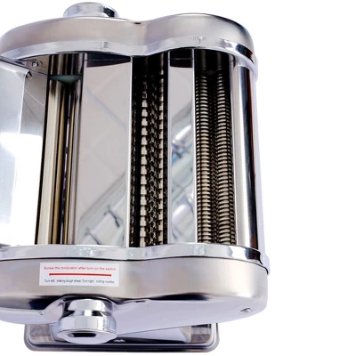 Product Name:Electric Pasta Maker Noodle Maker Pasta Making Machine Dough Roller Cutter Thickness Adjustable Stainless Steel US 110V 135w 2 Blades Type 1.5mm round noodle+4mm flat noodleMain Color:SilverMain Material:Stainless SteelMULTIFUNCTIONAL – This versatile pasta machine can be used for both dough sheet pressing and noodle cutting. It comes with two blades that produce two different noodle sizes: 1.5mm thin noodles and 4mm flat noodles. This makes it perfect for a variety of pasta dishes.