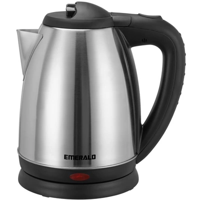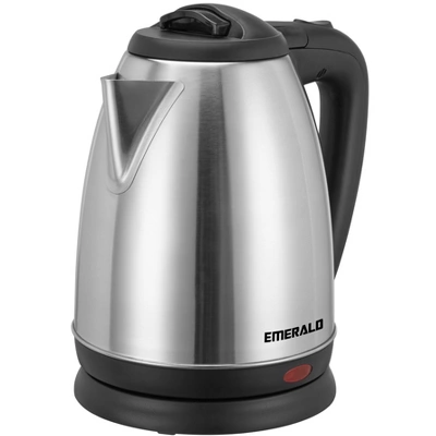 Emerald’s 1.8L Electric Kettle combines speed, safety, and style for a seamless water boiling experience. Equipped with 1350 watts of power and Rapid Boil Technology, it heats water quickly and efficiently, perfect for your favorite teas, coffee, instant noodles, oatmeal, baby formula, and more.Crafted with a 304 stainless steel interior, this kettle offers a clean, rust resistant surface that’s easy to maintain. The stay cool handle and power on indicator light ensure safe handling and clear visibility while in use. For added peace of mind, it features auto shut off and boil-dry protection, supported by a double gold temperature control system for precise, long lasting performance.The kettle sits on a 360° rotating base, making it easy to lift and place back from any angle, ideal for both left and right handed users. A sleek stainless steel exterior and PP heat resistant body complete the look with modern durability.Whether you’re starting your day or winding down, Emerald’s 1.8L Electric Kettle delivers reliable performance and convenience for any home, office, dorm, or travel setup.