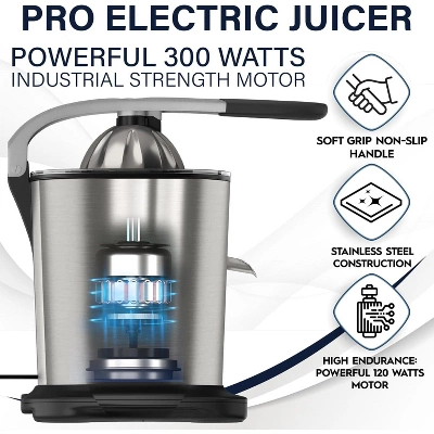 - Juice Like a Pro—Fast: 300W powerhouse motor crushes citrus in seconds. More juice, less work, every time.