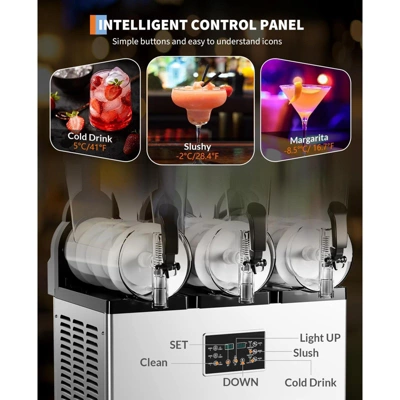 Garvee Commercial Slushy Machine, 900W Stainless Steel Slushie Maker, Fast Cooling & Low-Noise, Auto-Clean for Restaurants, Cafes, Food Trucks