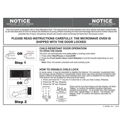 At GE Appliances, we bring good things to life, by designing and building the world’s best appliances. Our goal is to help people improve their lives at home by providing quality appliances that were made for real life. Whether it’s enjoying the tradition of making meals from scratch or tackling a mountain of muddy jeans and soccer jerseys, GE Appliances are crafted to support any and every task in the home. Features:1.1 cu. ft. capacity950 Watts (IEC-705 test procedure)Weight and time defrostSimply enter the weight of the food, and the oven automatically sets the optimal defrosting time and power level or set your desired time for defrostingTurntableRotates food throughout the cycleTwo-Step Child LockThis mandatory feature helps prevent unintended use by younger family members, with the option to deactivate it if not needed.