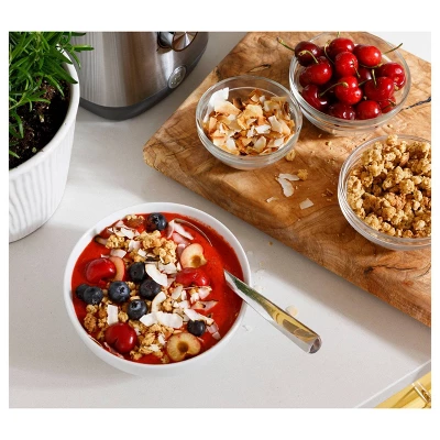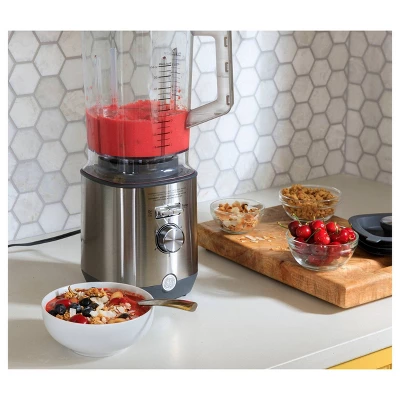 - 1000-Watt Blender – This versatile and powerful 1000-watt blender delivers the performance you need for blending essentials like crushing ice, pureeing frozen fruit, or blending sauces, soups and frappé drinks