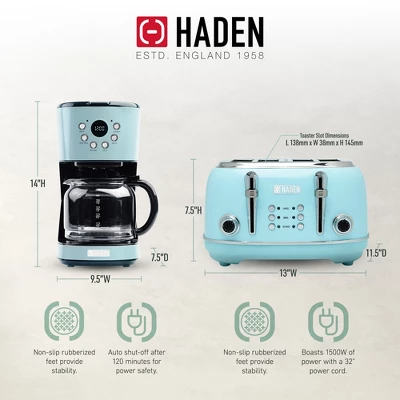 - UPGRADE YOUR MORNING: Elevate your kitchen with this Haden coffee maker and Heritage toaster, where classic style meets contemporary living