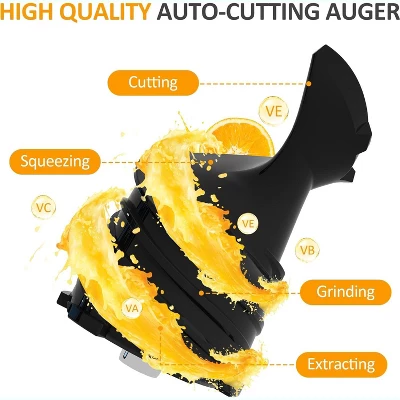 Experience effortless juicing with our advanced slow juicer, featuring a 5.9¡± extra-wide feed chute that allows whole fruits like apples and carrots to go in without pre-cutting¡ªsaving you time while keeping your juice fresh and pure. Using cold press technology at 55 RPM, it preserves vital nutrients, delivering up to 98% juice yield for a smoother, pulp-free result. The smart dual-mode control ensures a jam-free experience, and the large 2L barrel makes it ideal for families or gatherings. Plus, its easy-to-clean design means you can spend more time enjoying your fresh juice and less time cleaning up. A true blend of convenience and health! Specification Product Name: Juicer Machines Color: Black Material: PC, Stainless Steel Dimensions: 10”L ¡Á 6.7”W ¡Á 20.5”H Max Capacity: 2L Voltage: 120V Frequency: 60Hz Power: 250W Certification: CCC/CB/CE/GS/ROHS/ETL