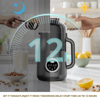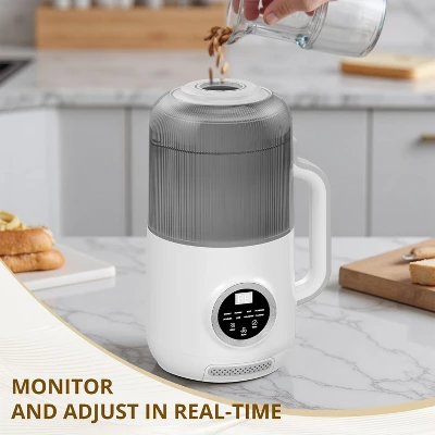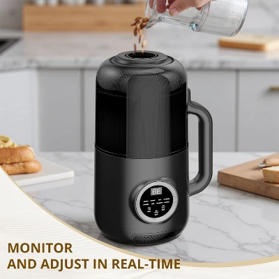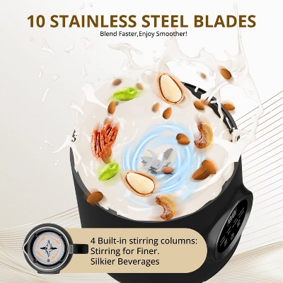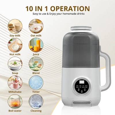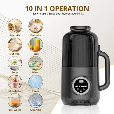【8-in-1 Multi-Functional & 40oz Spacious Capacity】This nut milk maker is designed with 8 versatile functions, enabling you to effortlessly create a wide range of beverages and dishes, including nut milk, oat milk, milkshakes, soups, and even boil water. The 40oz capacity is well-suited for those who enjoy preparing generous quantities of healthy drinks at once, meeting the needs of multiple servings.【 Delay Start & Keep Warm Convenience】Plan your beverage-making schedule with the practical 1-12 hour delay timer. You can prepare your ingredients in advance, such as the night before, and wake up to freshly made, warm drinks in the morning. Additionally, the Keep Warm function maintains your beverage at a consistent 60°C for up to 2 hours, making it a great choice for busy mornings or when serving guests.【Upgraded 10-Blade Precision Blending】This electric bean and nut milk machine is equipped with specially designed 10-blade stainless steel layered blades and a built-in quadrangular stirring column. This combination ensures rapid and efficient blending, resulting in smoother and finer beverages with a consistent texture.【Simple One-Touch Cleaning】Cleaning this nut milk maker is a breeze thanks to its one-touch self-cleaning mode. The interior is made of 304 stainless steel, which effectively removes any residue buildup. For optimal cleaning results, it is advisable to add water immediately after pouring out the beverage and initiate the self-cleaning process.【Comprehensive Accessory Set & Versatile Milk Options】This nut milk maker comes with a complete set of accessories, including a power cord, measuring cup, cleaning brush, filter, nut milk bag, and a recipe book, providing you with everything you need to start creating delicious drinks right away. Please note that oat milk and nut milk are not heated during the blending process. If you prefer warm milk, you can utilize another function to heat it after blending. It also makes a thoughtful and practical gift for birthdays, Christmas, Thanksgiving, or housewarmings, suitable for family, friends, and loved ones.