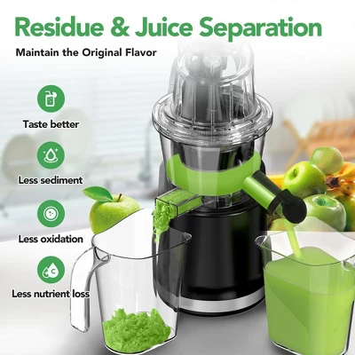 Unlock lab-grade 99% nutrient retention with 60RPM slow pressing—no heat damage or oxidation! Dual 3.3″ chutes swallow whole produce, slashing prep time. Patented concave grinding boosts yield 96% while preventing clogs and hand injuries. Enjoy pure juice/pulp separation in 900ml cups. One-touch REV clearing eliminates jams. Library-quiet (<60dB) and BPA-free for baby-safe use. Dishwasher-friendly parts + brush make cleanup effortless. Transform hard veggies into silky-smooth vitality elixirs—your daily wellness ritual starts here!