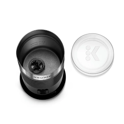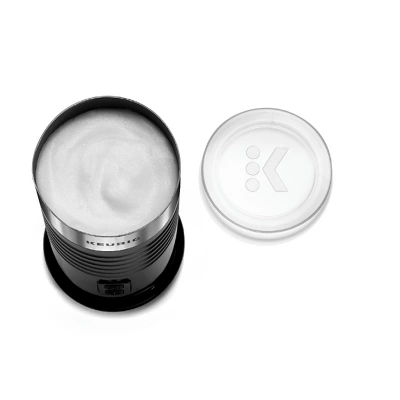 Introducing the new Keurig Milk Frother. Enjoy creamy, velvety frothed milk with all of your favorite beverages. With the Keurig Milk Frother, you can now easily make hot or iced lattes and cappuccinos at home. The Milk Frother features two frothing options – hot frothing and cold frothing. Press the hot froth button to heat and froth milk for rich lattes and cappuccinos, or press the cold froth button to cold froth milk for creamy and refreshing iced lattes and cappuccinos. Froth your choice of fresh milk including skim – plus soy and almond. The Keurig Milk Frother makes it easy to enjoy the specialty coffeehouse beverages you love, using your Keurig brewer. When creating beverages using your Milk Frother and your Keurig brewer, we recommend brewing a cup of coffee on either a 4oz or 6oz brew size and using the STRONG button if available. To make an iced latte or iced cappuccino, fill a 16oz plastic cup half way with ice and follow the same recommended brewing instructions. Once your coffee is brewed, pour the frothed milk over your coffee and enjoy your delicious hot or iced latte or cappuccino. Note- for iced beverages, only use a plastic cup, do not use glass. The Milk Frother also features a non-stick coating interior for easy clean up and a compact size that won’t take up too much counter space or easily stores away when not in use. The frother is energy efficient and automatically shuts off when not in use.
