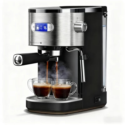 This semi-automatic coffee machine is versatile, easily making various types of coffee to satisfy different tastes. With an intuitive LED interface and knob control, it’s easy to use. The 1.2 lbs. easy-to-clean water tank and top cup heating function maintain the best coffee flavor. Electronic temperature control, 20-BAR high-pressure extraction, and a 15-minute auto shut-off feature ensure energy-saving and safety. The stylish design fits various occasions.
