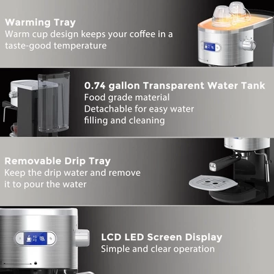 - 【Intuitive LCD Display & Smart Control】Master your coffee craft effortlessly using the blue LED screen and tactile knob/button interface. Monitor real-time brewing data, select single/double shots (under 25s per cup), and fine-tune settings for consistent results. The rapid-heat system guarantees café-speed preparation without compromising quality.