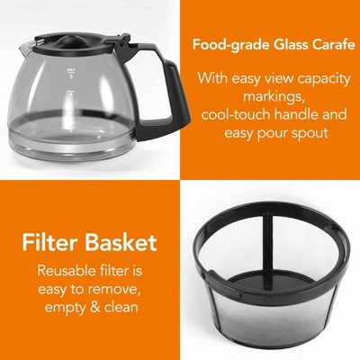 - 2-Hour Keep Warm — This 5 cup coffee maker comes with a warming plate that keeps your coffee warm for 2 hours.