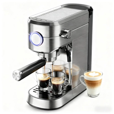 - Professional Espresso Machine:Achieve cafe-quality results at home with 20-bar professional pressure, ensuring rich flavor and perfect crema in every shot. The 1350W powerful heating system delivers consistent high performance.