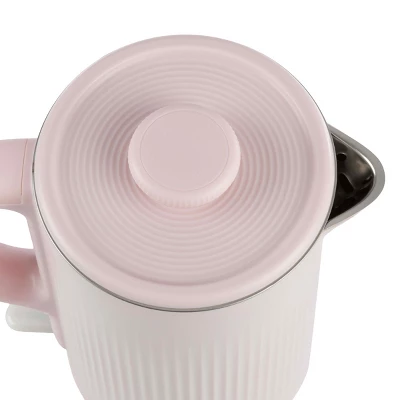 Quickly boil water for tea, coffee, and instant meals in style with the Water Heater Kettle by Classic Cuisine. This easy-to-use electric hot water heater has a capacity of 1.8-liters and features auto-on as well as automatic shut off. This sleek kitchen appliance has a retro appearance that will be a stylish addition to any kitchen or dorm, and it makes a great gift for college students as well as coffee or tea aficionados.