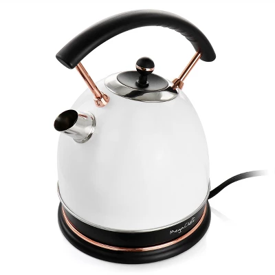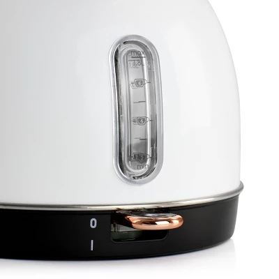 Add a touch of Style and fashion with the MegaChef 1.8 Liter Half Circle Electric Tea kettle in White with Rose Gold finish.