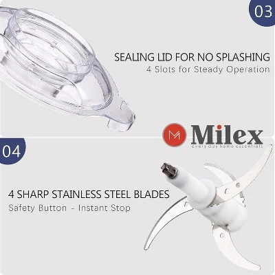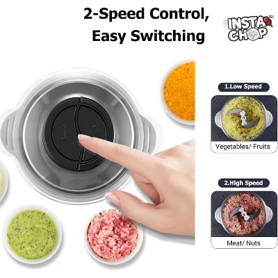 - Stainless Steel Blades: For perfect chopping, slicing and dicing. food-grade Glass Bowls Suitable to Chop Different Food, Built-in Safety Switch: Ensures safe operation.