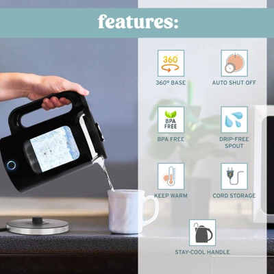- 360 – CLEAR VIEW GLASS WINDOW – The sleek and convenient glass window lets you easily monitor water levels without opening the lid. Keep warm function enabled for sustained temperatures.