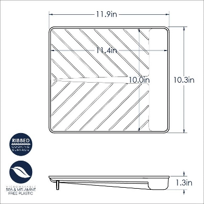 - Ridges keep food up and away from draining grease
