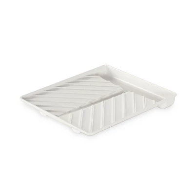 - Slanted tray for cooking bacon or defrosting food in the microwave, Ridges keep food up and away from draining grease, Dishwasher-safe; moves easily from freezer to microwave to table for serving.