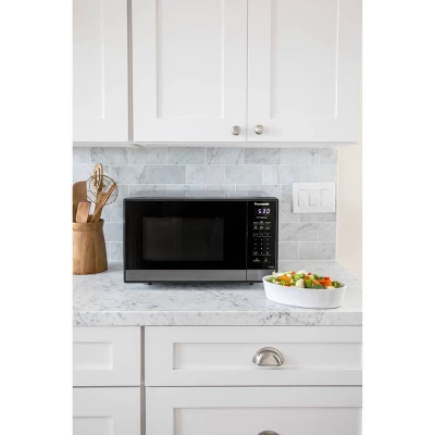 The Panasonic Stainless-Steel Countertop Microwave gives you more interior capacity while delivering 900 watts of cooking power. The compact microwave oven takes up less space on your countertops while delivering energy-efficient controls like 7-preset auto-cook options, auto-defrost and more. With the Genius Sensor technology, this microwave takes the guesswork out of cooking by automatically adjusting power levels and cooking time. More modern tools make heating and reheating even more convenient, like a keep-warm feature and quick-minute feature. The sleek black stainless-steel exterior, white LED display and gray interior make this microwave oven a stylish addition to your kitchen appliances.