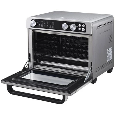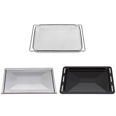 - Easy-clean interior fits a 12″ pizza; Includes mesh basket rack for dehydrating and air frying, oven rack, and enamel tray