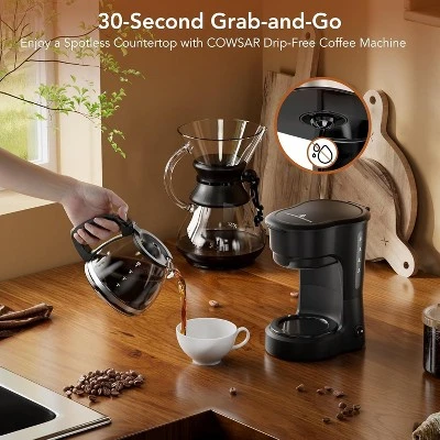 - Food-Grade Glass Carafe & Drip-Free Design : The high-temperature-resistant glass carafe ensures a pure coffee taste, while the drip-free design prevents spills and makes pouring easier.