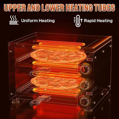 - Powerful Rapid Heating: This commercial pizza oven for restaurant get restaurant-quality results fast with our 1100W commercial-grade heating system. Perfectly cooks pizzas in minutes while maintaining even heat distribution for crispy crusts and melted cheese every time. Ideal for busy kitchens needing quick, reliable performance