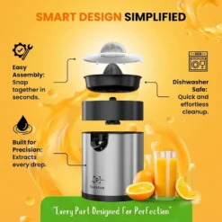 Eurolux 300W Citrus Juicer Power Pro– Stainless Steel, Quiet, Dishwasher Safe, Anti-drip Spout