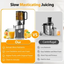 AeittoMega4 Slow Juicer Machines, 4.9″ Extra Large Feed Chute For Whole Fruits And Vegetables