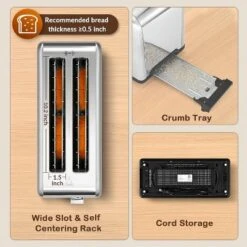 Compact with a clean, minimal design, this toaster is a slice of Scandinavia perfect for any modern kitchen. Equipped with a click-to-pre-open removable crumb tray, you can keep cleaning to a minimum and the 6 power setting will ensure your toast is just how you like it.