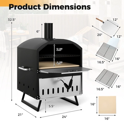 - 【Extended Outdoor Use】Crafted from high-temperature resistant metal and stainless steel, this patio oven withstands prolonged burning. Moreover, the included charcoal grill and cooking grill are both long-lasting and easy to clean.